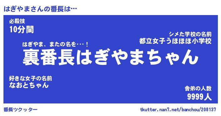 | ピコ太郎風あだ名 | 『ハコ一郎』『ピハ太郎』『ハギ四郎』 |