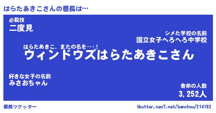 | 2回繰り返すあだ名 | 『はらはら』『ははらら』『ぬぷぬぷ』 |