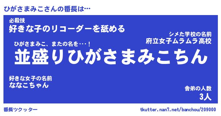 | 恥ずかしいあだ名 | 『プリティーひがさまみこ』『ひがっちょ』 |