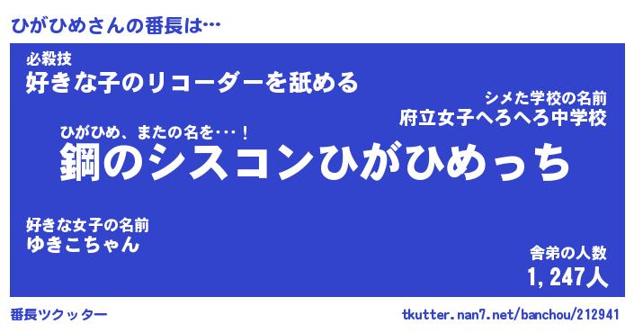 | ファンタジー風あだ名 | 『ヒガフェル』『エターナルヒガヒメー』 |