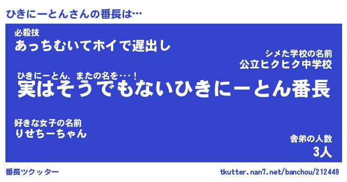 | 肩書あだ名 | 『ひきにーとん店長』『ひきにーとん班長』 |