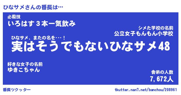 | ファンタジー風あだ名 | 『ヒナフェル』『エターナルヒナサメー』 |