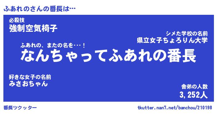 | 意味不明あだ名 | 『ペロリンふあれの』『永久保存ふあれの』 |