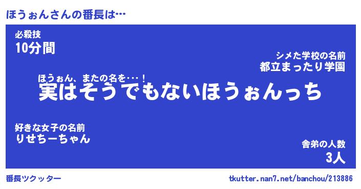 | 肩書あだ名 | 『ほうぉん店長』『ほうぉん総理大臣』 |