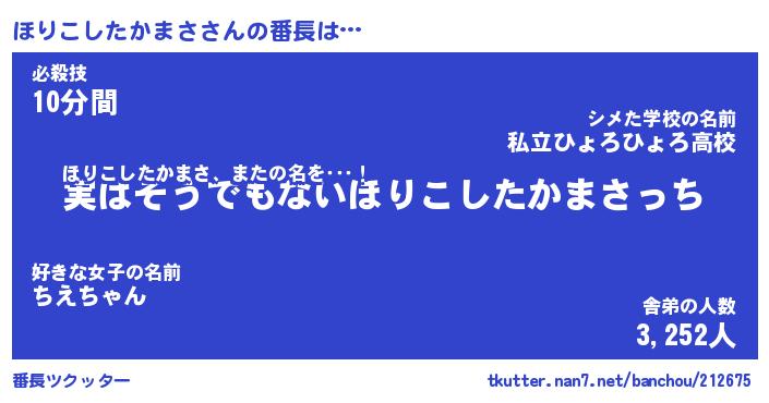 | 2回繰り返すあだ名 | 『ほりほり』『ほほりり』『うろうろ』 |