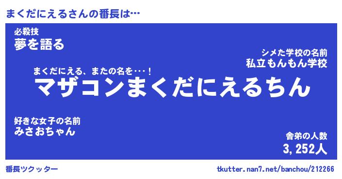 | ヘコむあだ名 | 『まくにゅー』『豆乳』『まくぷりん』 |