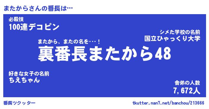 | 意味不明あだ名 | 『ペロリンまたから』『永久保存またから』 |