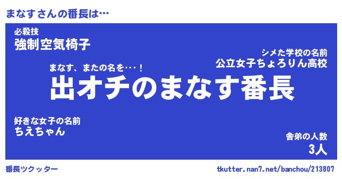 | 伝説のあだ名 | 『伝説のスナイパーまなす』 |