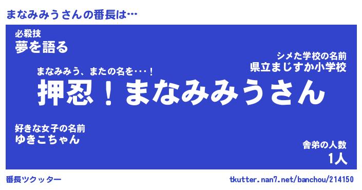 | 欧米人風あだ名 | 『マイケルまなみみう』 |