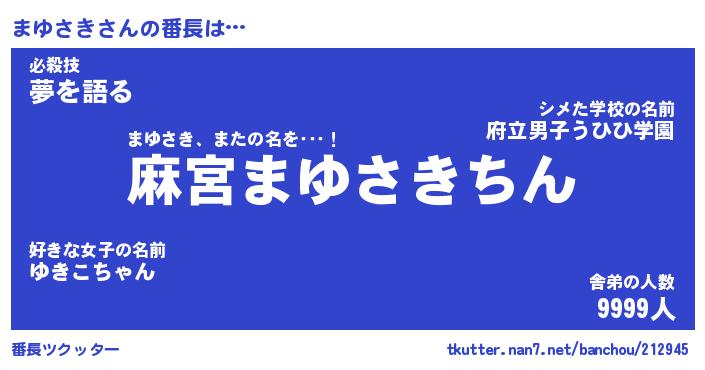 | ファンタジー風あだ名 | 『マユフェル』『エターナルマユサキー』 |