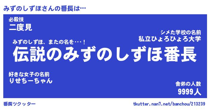 | 胡散臭い通販商品みたいなあだ名 | 『必ず成功する霊験あらたかなお札…その名も「みずのしずほ」』 |