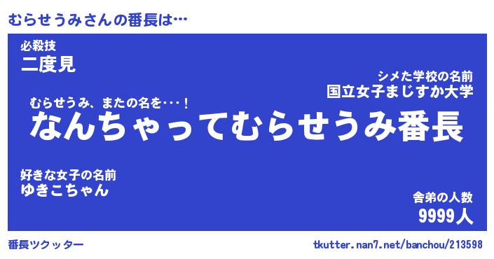 | ヒーロー風カッコイイあだ名 | 『スーパームラセウミ』『天弓騎士ムラ』 |