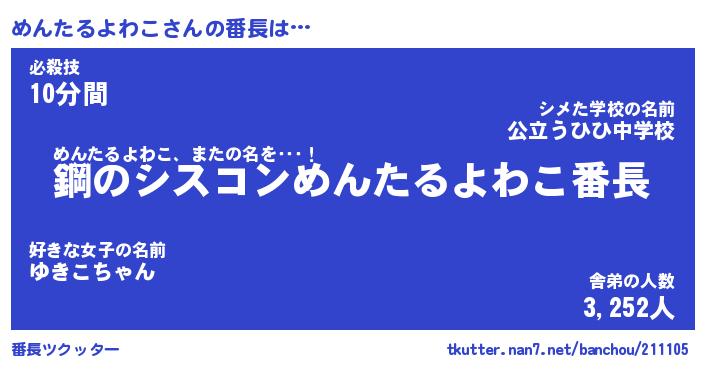 | 欧米人風あだ名 | 『マイケルめんたるよわこ』 |