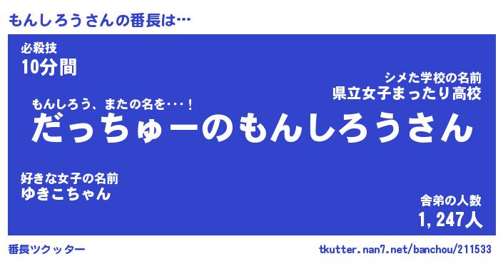 | ヘコむあだ名 | 『もんにー』『牛乳』『もんっ子』 |