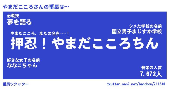 | 伝説のあだ名 | 『封印されしスナイパーやまだこころ』 |