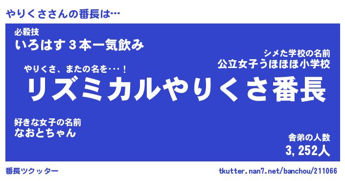 | 意味不明あだ名 | 『ペロリンやりくさ』『永久保存やりくさ』 |