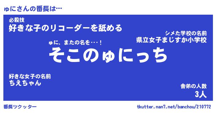 | ピコ太郎風あだ名 | 『ュコ三郎』『ピュ四郎』『ュニ太郎』 |