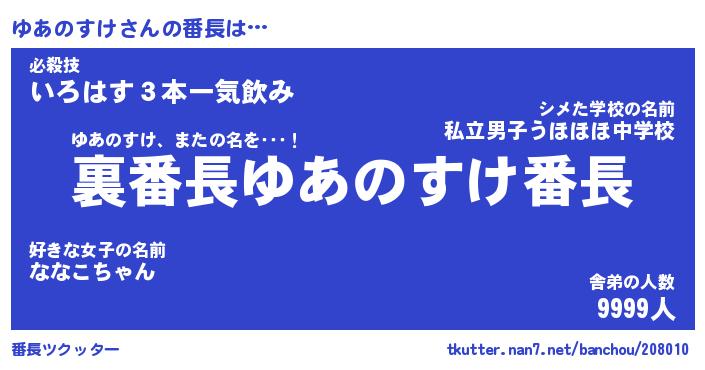 | ヘコむあだ名 | 『ゆあっふぃ~』『なまこ酢』 |