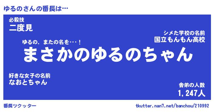 | 意味不明あだ名 | 『ペロリンゆるの』『ゆるのフォーエバー』 |