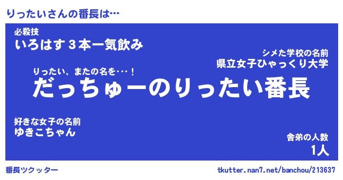 | 伝説のあだ名 | 『伝説のスナイパーりったい』 |