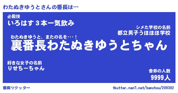 | 意味不明あだ名 | 『ペロリンわたぬきゆうと』 |