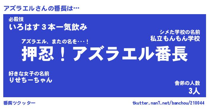 | ヒーロー風カッコイイあだ名 | 『スーパーアズラエル』『魔戒騎士アズ』 |
