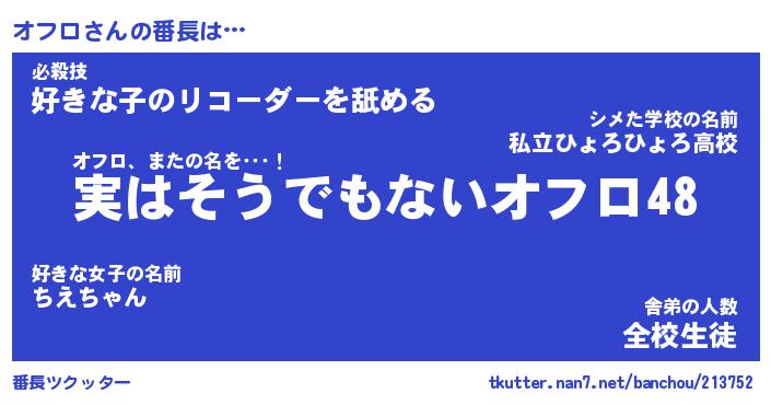 | 2回繰り返すあだ名 | 『オフオフ』『オオフフ』『ぬぷぬぷ』 |