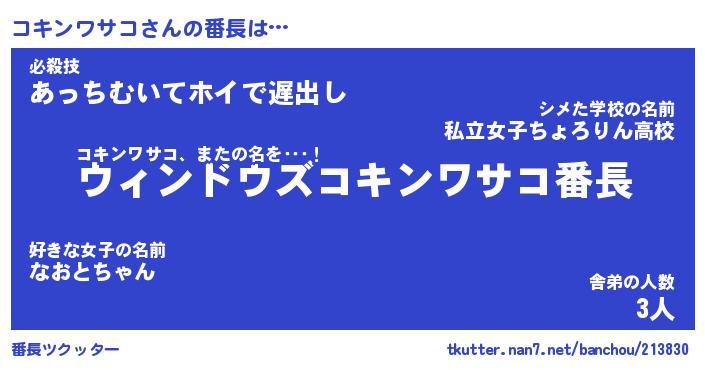 | 肩書あだ名 | 『コキンワサコ店長』『コキンワサコ団長』 |