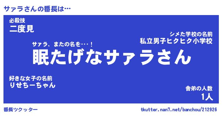 | 肩書あだ名 | 『サァラ社長』『サァラ国家主席』 |