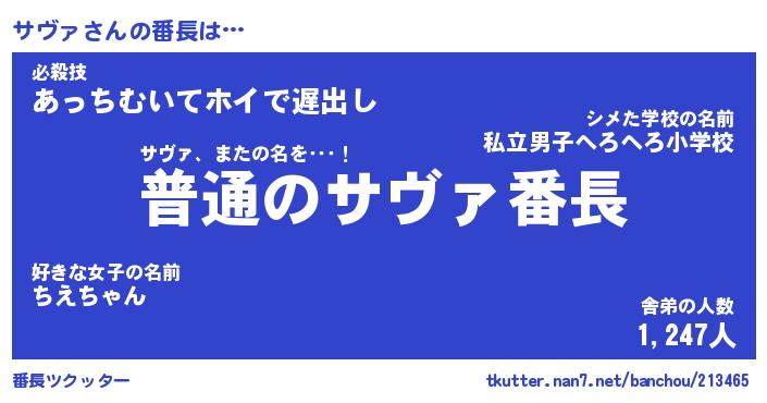 | ヒーロー風カッコイイあだ名 | 『スーパーサヴァ』『ウルトラサヴァマン』 |