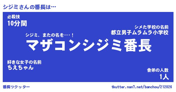 | 伝説のあだ名 | 『封印されしスナイパーシジミ』 |