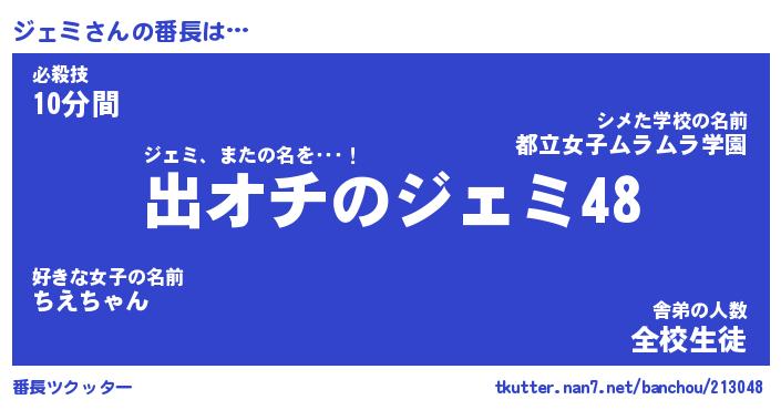 | ポケモン風あだ名 | 『ジェチュウ』『ジェミダネ』 |