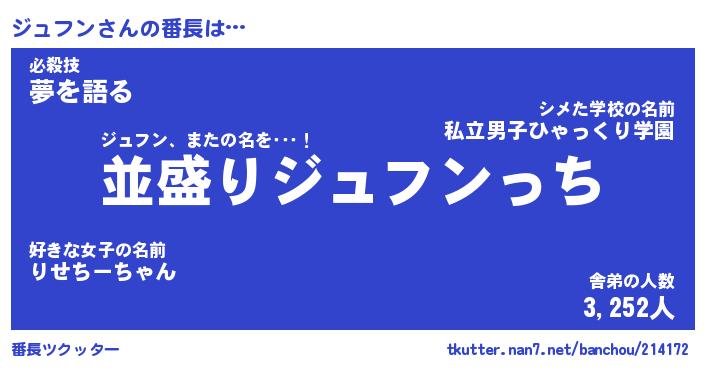 | 意味不明あだ名 | 『ペロリンジュフン』『永久保存ジュフン』 |
