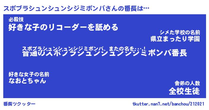 | 伝説のあだ名 | 『不死鳥のスナイパースポブラシュンシュンシジミボンバ』 |