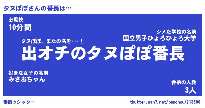 | 意味不明あだ名 | 『ペロリンタヌぽぽ』『永久保存タヌぽぽ』 |