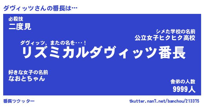 | ファンタジー風あだ名 | 『ダヴフェル』『エターナルダヴィッツー』 |