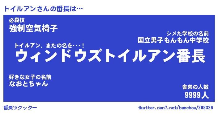 | ヒーロー風カッコイイあだ名 | 『スーパートイルアン』『幻影騎士トイ』 |