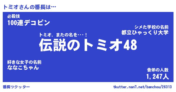 | ファンタジー風あだ名 | 『トミフェル』『エターナルトミオー』 |