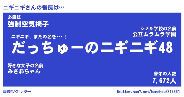 | ヘコむあだ名 | 『ニギふぇ~』『豆乳』『ニギっぺ』 |