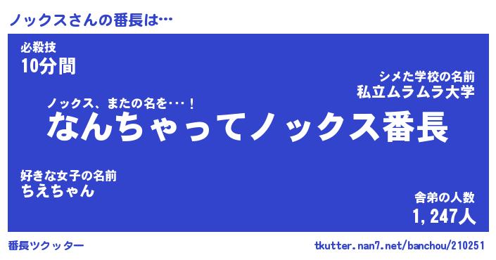 | 意味不明あだ名 | 『ペロリンノックス』『永久保存ノックス』 |