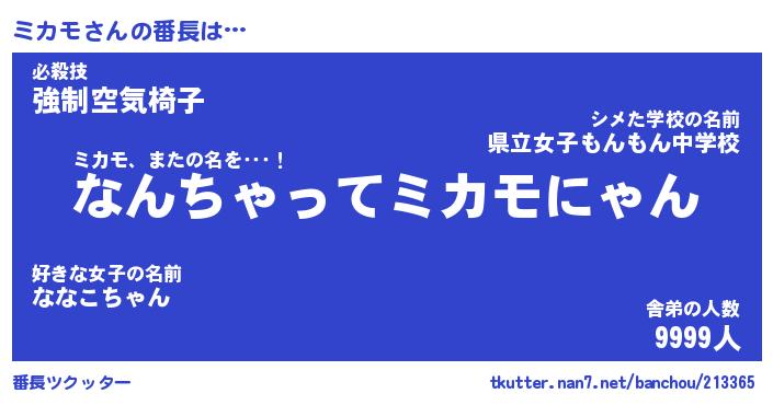 | 意味不明あだ名 | 『ペロリンミカモ』『ミカモフォーエバー』 |