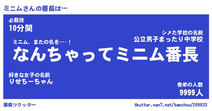 | 意味不明あだ名 | 『ペロリンミニム』『ミニムフォーエバー』 |