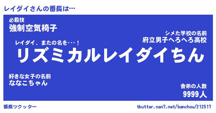 | ヘコむあだ名 | 『レイにー』『つくし』『レイ太郎』 |