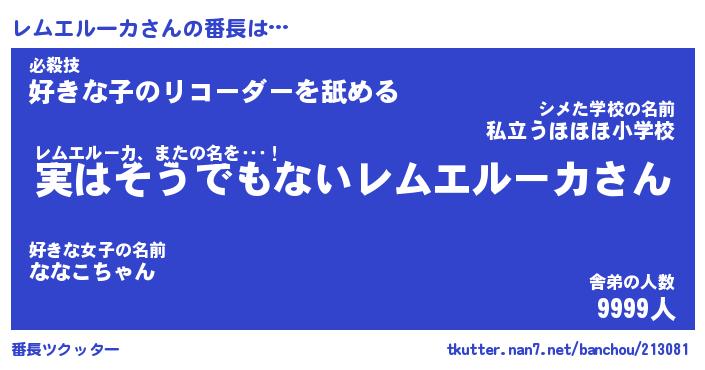 | ヒーロー風カッコイイあだ名 | 『スーパーレムエルーカ』『幻影騎士レム』 |