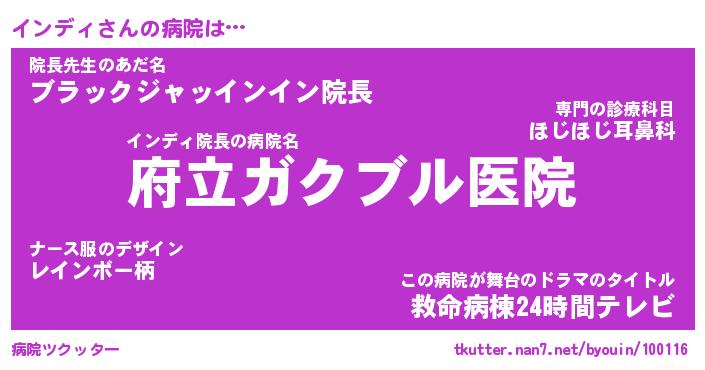 | 意味不明あだ名 | 『ペロリンインディ』『永久保存インディ』 |