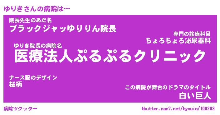 | ヘコむあだ名 | 『ゆりにゅー』『なまこ酢』『ゆりお』 |