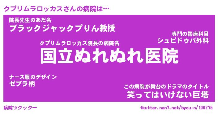 | ヘコむあだ名 | 『クプもー』『なまこ酢』『クプっ子』 |