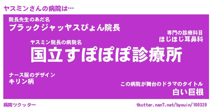 | 男性向けラノベタイトル風あだ名 | 『ヤスミンの憂鬱』 |