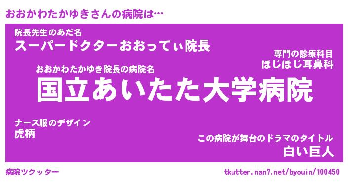 | 男性向けラノベタイトル風あだ名 | 『おおかわたかゆきの憂鬱』 |