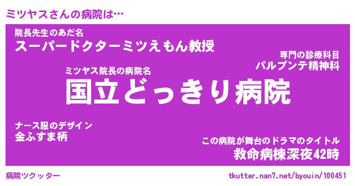 | ヒーロー風カッコイイあだ名 | 『スーパーミツヤス』『幻影騎士ミツ』 |
